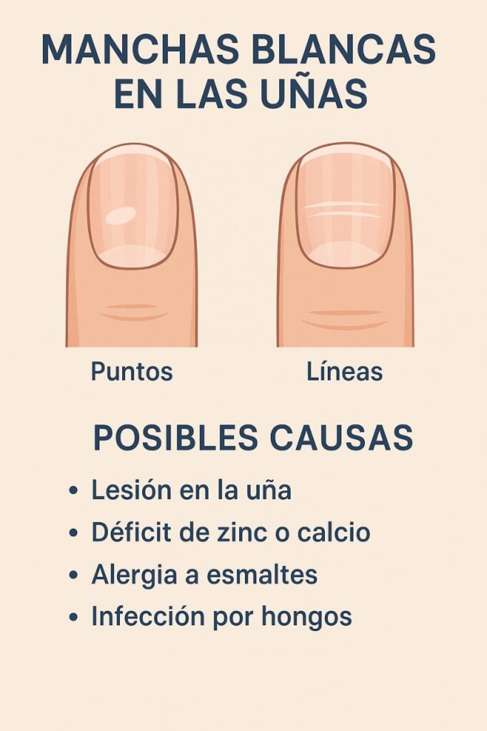 Hongos, psoriasis, anemia o infecciones crónicas pueden reflejarse en las uñas. Siempre se recomienda consultar si hay cambios extremos en color o textura.